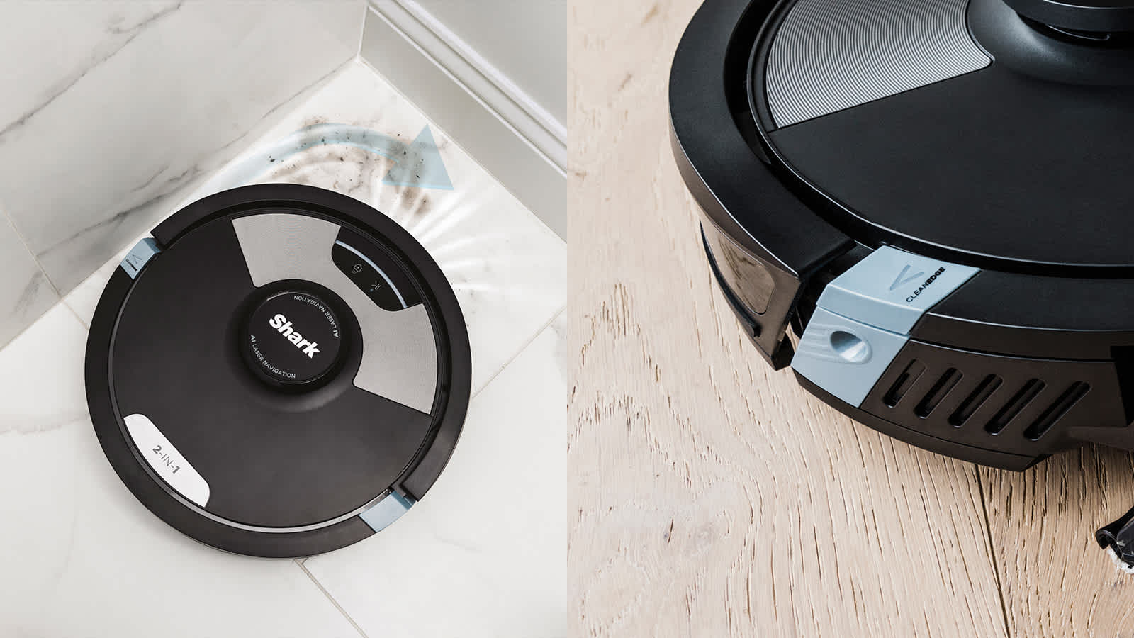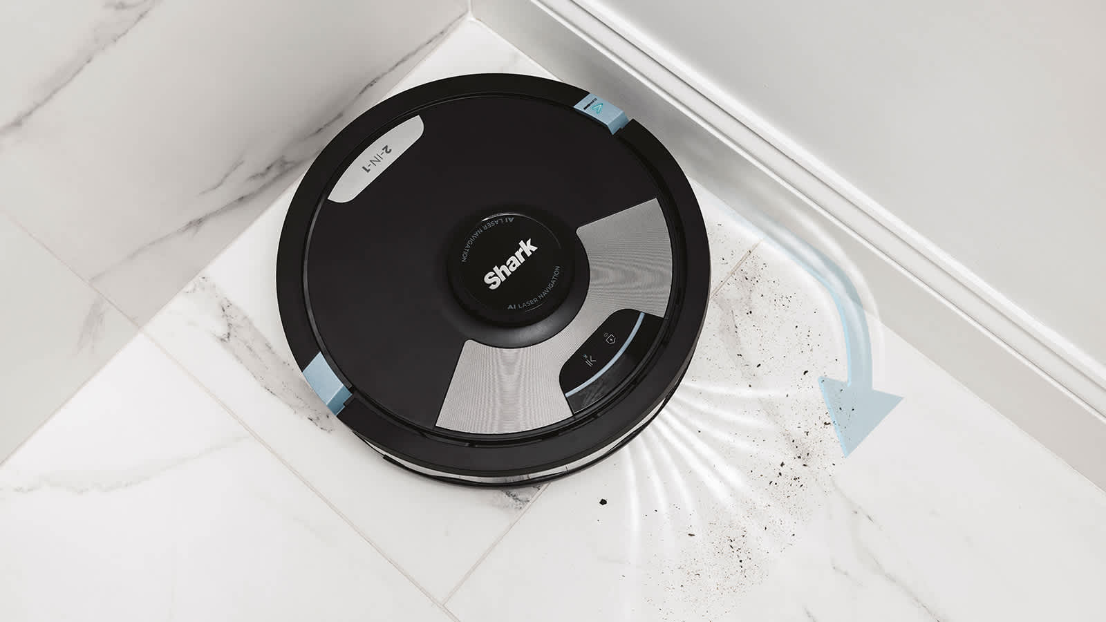 La fonction CleanEdge projette un jet d’air ciblé pour déloger la saleté et les débris des bordures et des coins, et les placer sur le parcours du robot, assurant ainsi des coins 50% mieux nettoyés**.