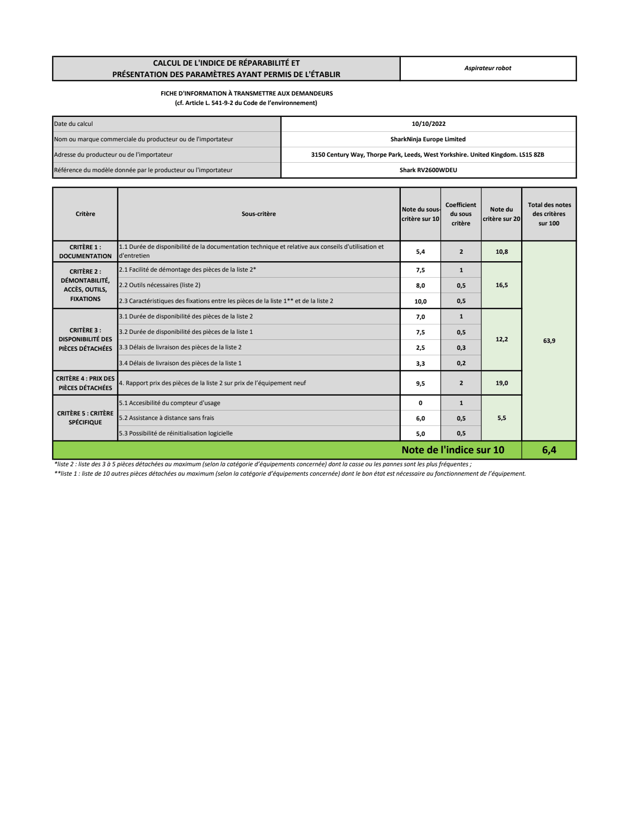 *Par rapport au modèle Shark RV750EU.